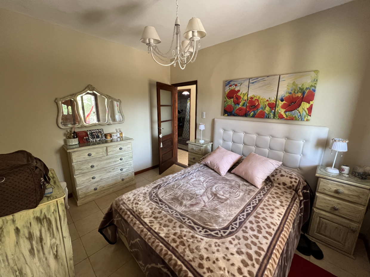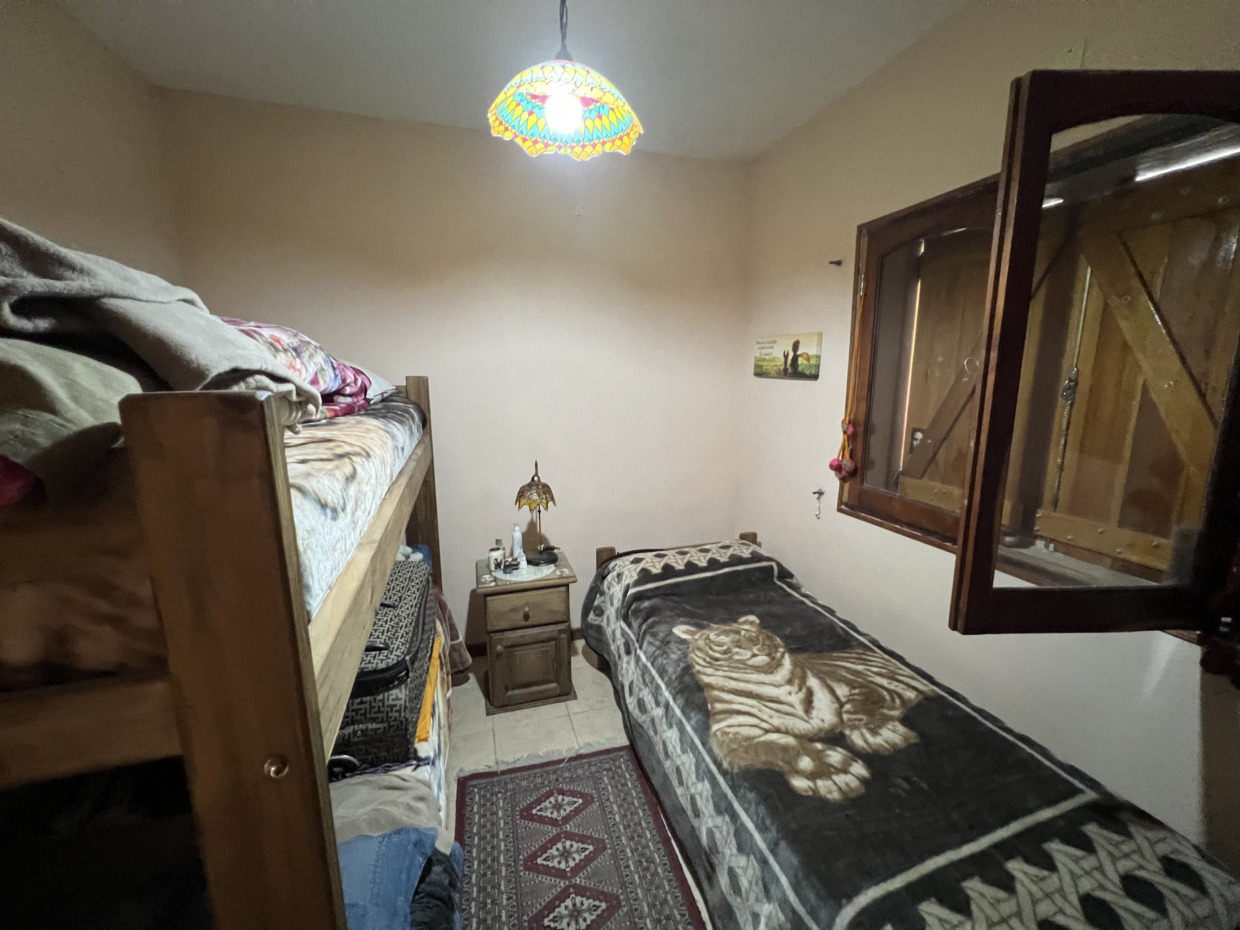 En planta baja tiene tres habitaciones, dos de ellas con calefactores, y un baño completo. Además, cuenta con lavadero cubierto con pileta y conexión para lavarropas, cuarto de guardado, y una galería con asador y horno chileno, ideal para disfrutar en familia.